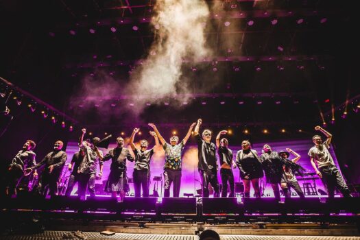 El clímax se alcanzó con «Ciudad de pobres corazones«, donde el guitarrista Juani Agüero desató un frenesí con su solo, inyectando una dosis extra de energía rockera a ese clásico de los años ochenta. La formación se completó con un elenco de músicos excepcionales: Emme, cuya voz deslumbra como vocalista principal; Diego Olivera, a cargo del bajo; Gastón Baremberg, marcando el ritmo desde la batería; Juan Absatz, añadiendo matices desde los teclados y coros; Vandera, con su maestría en la guitarra y sus coros; Alejo Von Del Pahlen, elevando las melodías con su saxofón; Manuel Calvo, enriqueciendo el sonido con su trombón; y Ervin Stutz, aportando su destreza en la trompeta y el flugelhorn.