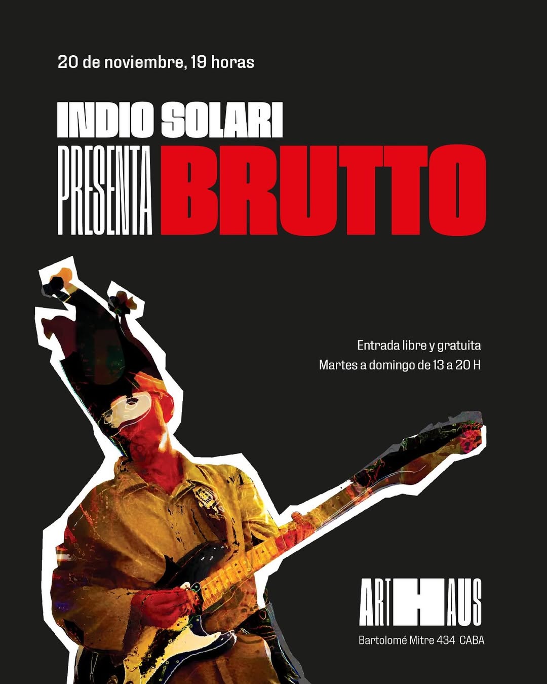El Indio Solari vuelve a sorprender, esta vez lejos de los escenarios y las canciones. El histórico exlíder de Patricio Rey y sus Redonditos de Ricota presentará en la Ciudad de Buenos Aires su muestra de arte digital “Brutto”, que abrirá el 20 de noviembre a las 19 en ArtHaus Central (Bartolomé Mitre 434). La exposición podrá visitarse de manera gratuita de martes a domingo, de 13 a 20.