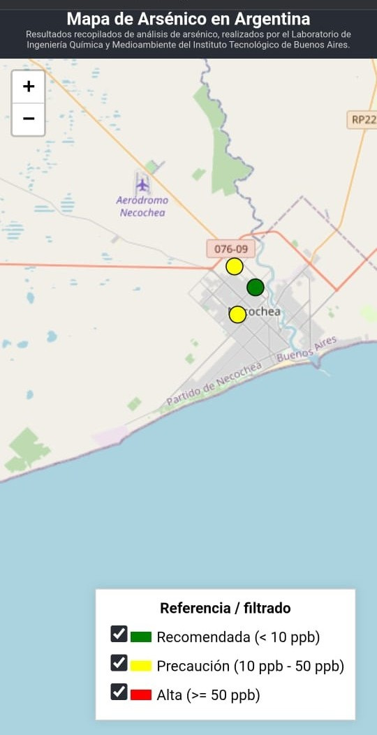 El mapa del arsénico muestra en tiempo real los niveles de arsénico en el agua de todo el país. arsénico. (Fuente: ITBA)