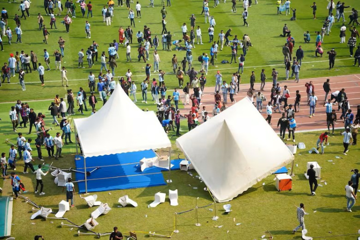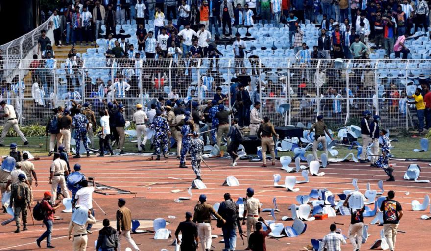 La bronca de los hinchas no tardó en explotar: invadieron el campo, rompieron butacas y vandalizaron el estadio Salt Lake, símbolo del fútbol indio. La situación se volvió tan tensa que Messi y su comitiva, que incluía a Luis Suárez y Rodrigo De Paul, debieron abandonar el lugar rápidamente.