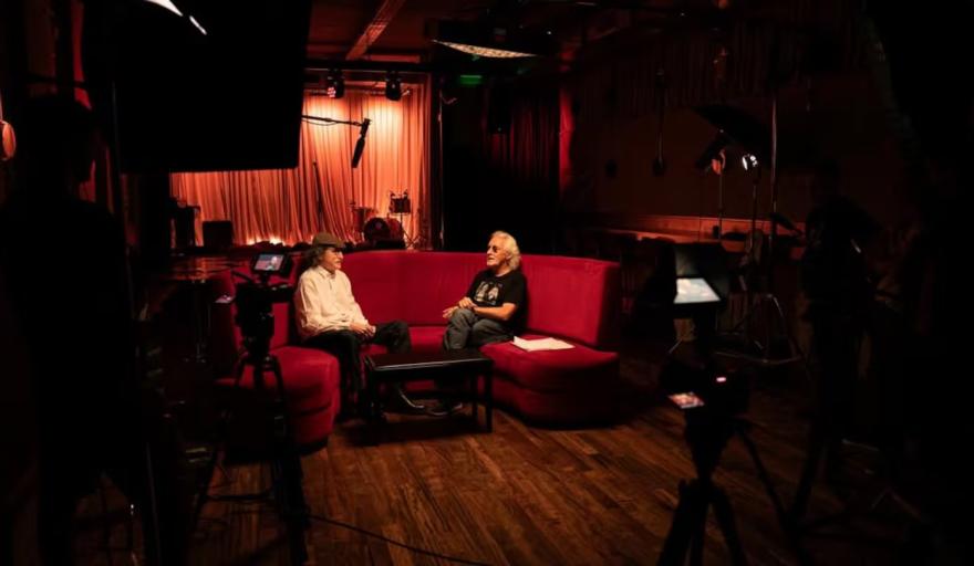 En los videos se los ve sentados en un sillón rojo, repasando recuerdos, observando fichas técnicas de discos y monitores donde aparecen imágenes vinculadas a la banda. El cierre, con un abrazo cargado de afecto, sintetiza una relación artística y humana que atravesó décadas.