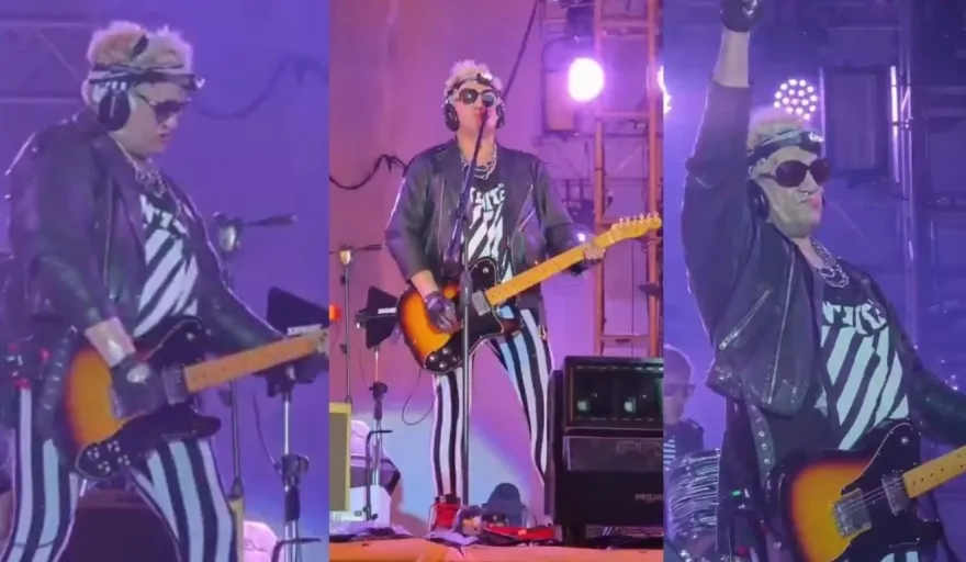 Autorizado por los jueces que intervienen en la causa por la muerte de Cristian Díaz, el concierto comenzó con un fragmento de “El Rey”. La escena inicial fue tan teatral como provocadora: el músico ingresó con una correa en la mano, paseando a una mujer exuberante, antes de dar paso a “Intoxicado” y “Nena, me gustas así”, que desataron la primera gran reacción del público.
