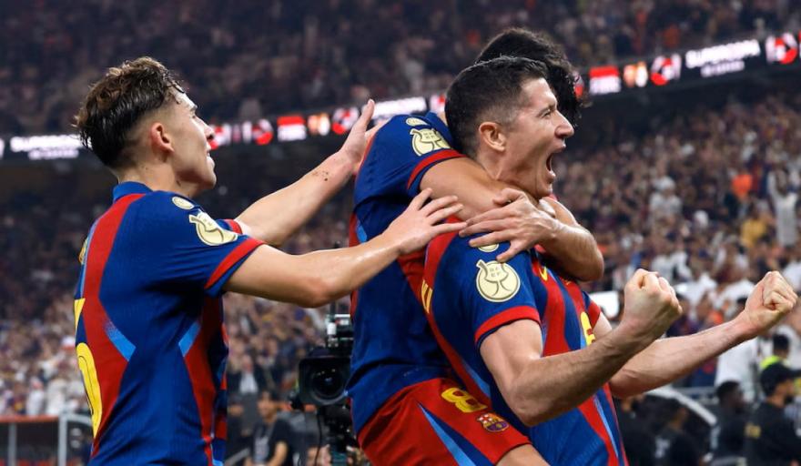 En una apasionante final, Barcelona venció por 3-2 al Real Madrid y se consagró campeón de la Supercopa de España en el King Abdullah Sports City de Arabia Saudita. Los goles del elenco Culé, que obtuvo su 16° título y se asentó como el máximo ganador, fueron obra de Robert Lewandowski y Raphinha por duplicado. Vinícius Júnior y Gonzalo García convirtieron para el equipo de Xabi Alonso. Frenkie de Jong fue expulsado en el cuadro catalán en los últimos minutos.