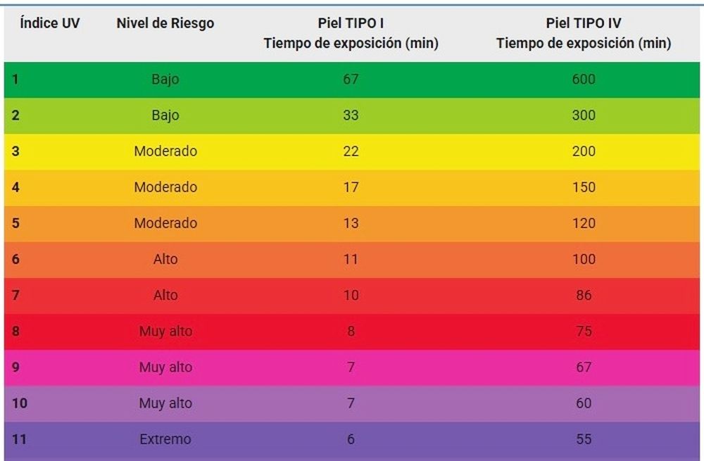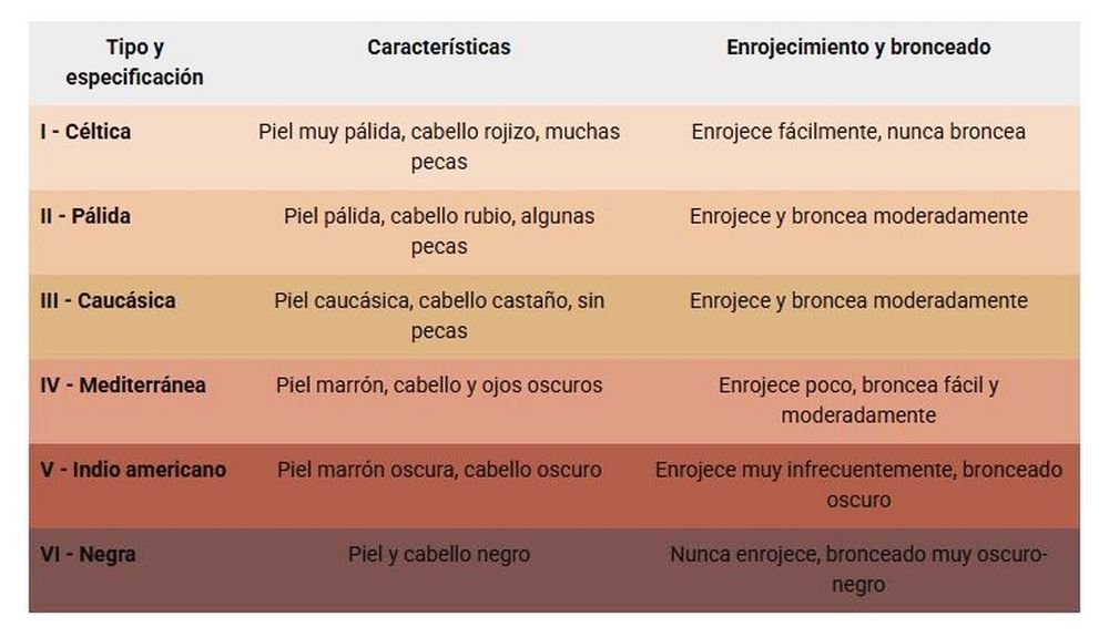 Para piel más clara, el riesgo ante exposición al sol es mayor, y para piel más oscura, el riesgo es menor. En Argentina se tienen en cuenta los tipos de piel en el rango más sensible: el Tipo I (Céltica) y el Tipo IV (Mediterránea).