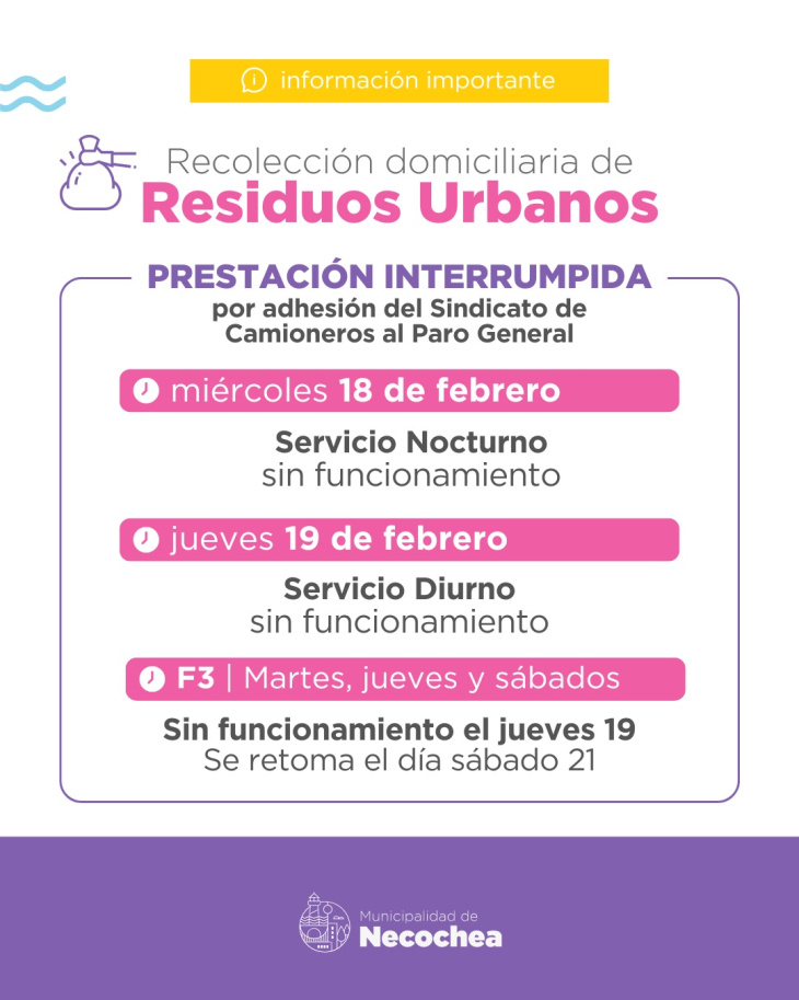 A diferencia de lo que se evaluaba inicialmente, la UTA confirmó que los colectivos urbanos no funcionarán este jueves. El comunicado difundido por la Unión Tranviarios Automotor, regional Mar del Plata, señala: “Desde la Unión Tranviarios Automotor Mar del Plata nos adherimos al paro convocado por la Confederación General del Trabajo, en defensa de la Ley de Reforma Laboral, a partir de las 00:00 horas de este jueves 19 de febrero en las ciudades de Mar del Plata, Necochea, Azul, Tandil, Partido de la Costa y Olavarría”. Con esta definición, no habrá servicio de micros azules ni verdes de la Compañía Transportes Necochea durante toda la jornada.